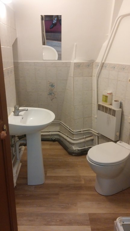 Salle d'eau privative située en face sur le palier avec douche et WC sanibroyeur.
