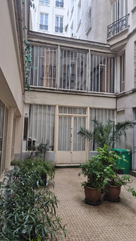 Appartement de 3 pièces meublé situé au 1er étage avec ascenseur d'un bel immeuble ancien proche du métro Temple, entre cour arborée et rue peu passante : entrée, grand séjour avec cuisine américaine aménagée et équipée, première grande chambre, salle de bain avec wc et lave-linge, deuxième grande chambre avec coin bureau et salle de bain. Chauffage et eau chaude électriques, parquet, grandes baies vitrées et verrière. Digicode, interphone.